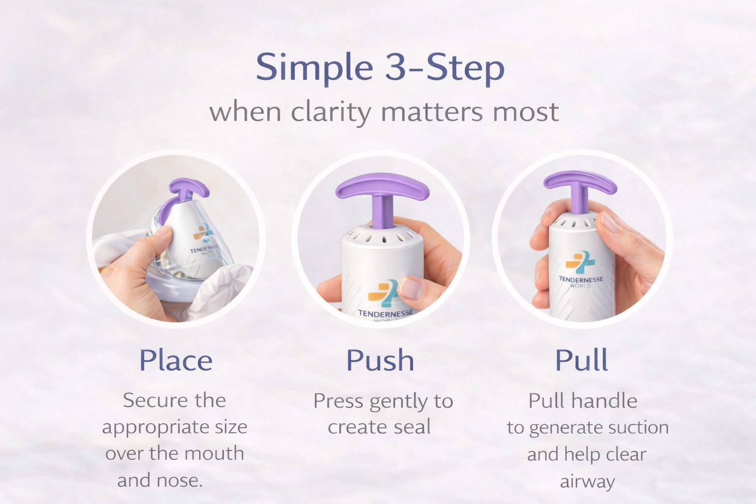 · Safe and Non-Invasive: The choking device is a handheld device that does not apply strong thrusts to the airway but rather gentle suction which reduces the chances of internal trauma or airway damage.
